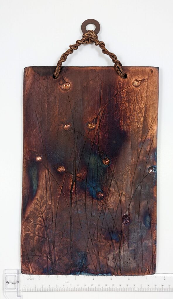 The Raku process is not predictable, and you never know how it will turn out! That is part of it’s mystery and charm. Raku involves fire and smoke. The back of most pieces is black from the smoke, and sometimes you might catch a wisp of smoky scent when it is new.